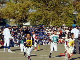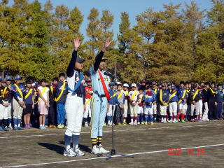 9時30分から体育協会志村雅事務長の司会のもと開会式が行われ、大会実行委員長であるスポーツ少年団宮崎英孝本部長の開会宣言、志村豊志郎練馬区長・高橋和実体育協会会長による主催者挨拶、また協賛者を代表し大陽ステンレス・スプリング株式会社横山正二会長から挨拶があり、その後、中山潤司実行委員から競技上の注意があり、最後に選手宣誓が行われました。壇上では、子供たちを代表して向山アパッチの安達翔真選手と関町タイガースの大山奈央選手が元気よく宣誓しました。