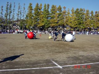 スポーツクラブルネサンスによるミニゲームを交えた準備体操で体をほぐした後、最初の競技である親子大玉送りが始まりました。参加者を4チームに分けて行われたこの競技は大変盛り上がり、競技の終盤では子供たちと保護者がトラックの中で入り乱れながら全力で走り回って楽しんでいました。 次の種目は子供たちによる縄跳び。4チームの子供がそれぞれ一人一人縄跳びを飛び、2分間引っかからずに飛び続けられた人数の合計を競うというルールで行われました。
