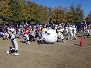 参加者を4チームに分けて行われたこの競技は大変盛り上がり、競技の終盤では子供たちと保護者がトラックの中で入り乱れながら全力で走り回って楽しんでいました。
