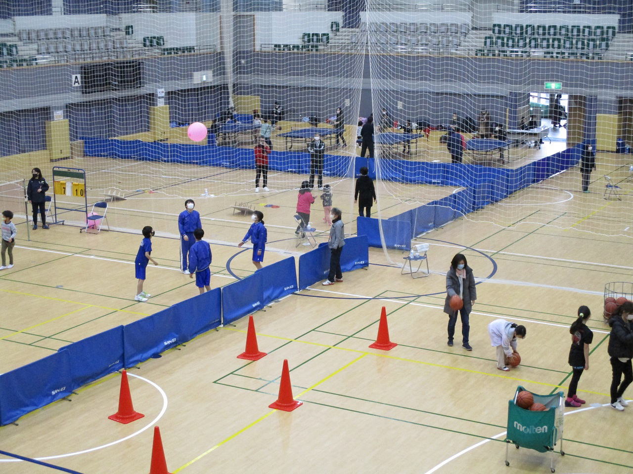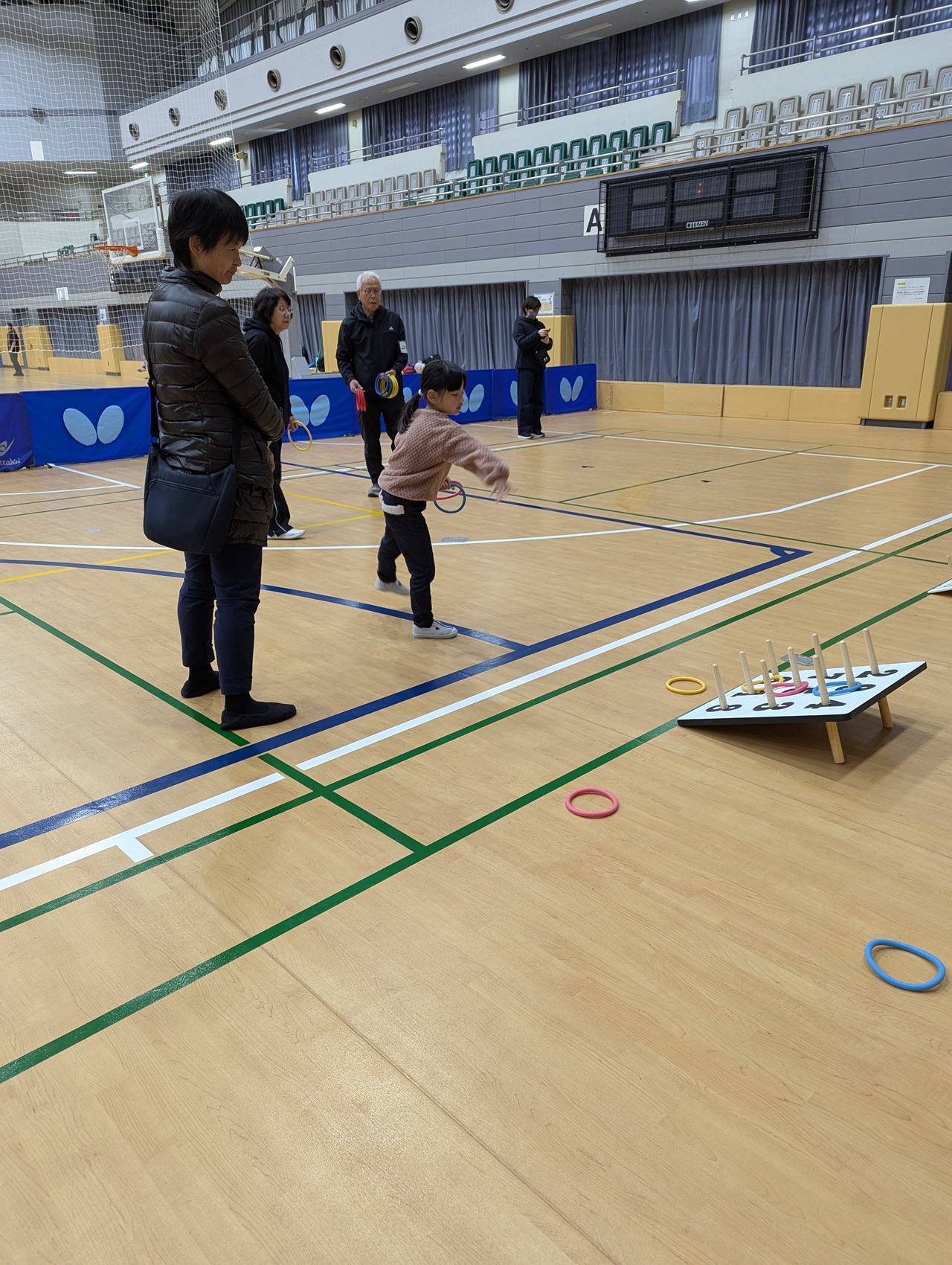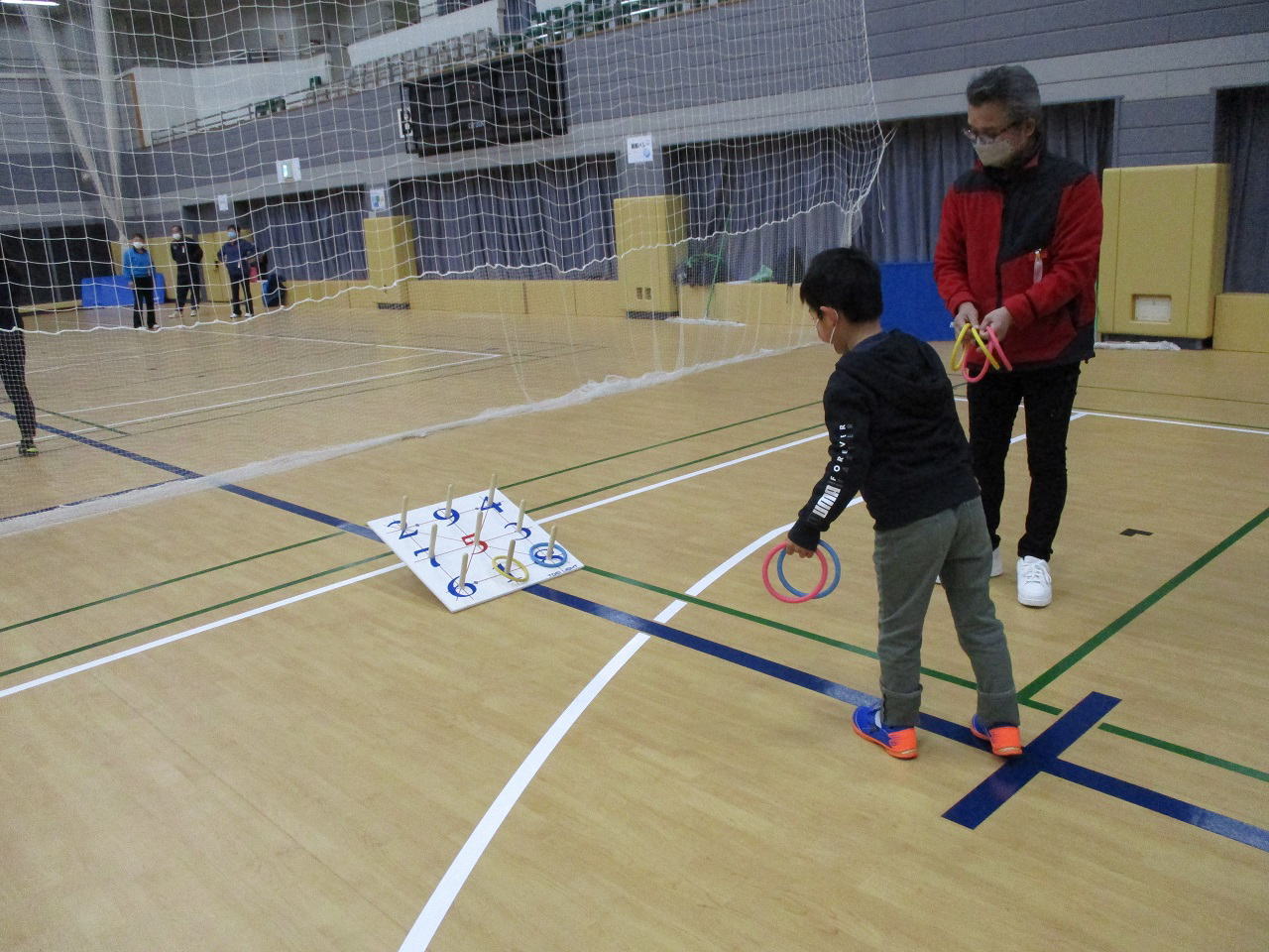 | 種目 | キャッチバレーボール・ミニバスケットボール・卓球・バドミントン・わなげ・ダーツ・なわとび・体力測定 |